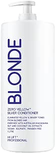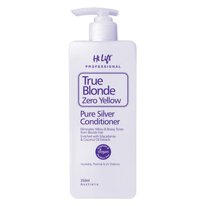 Hi Lift True Blonde Zero Yellow Pure Silver Conditioner eliminates unwanted yellow and brassy tones from blonde and grey hair.